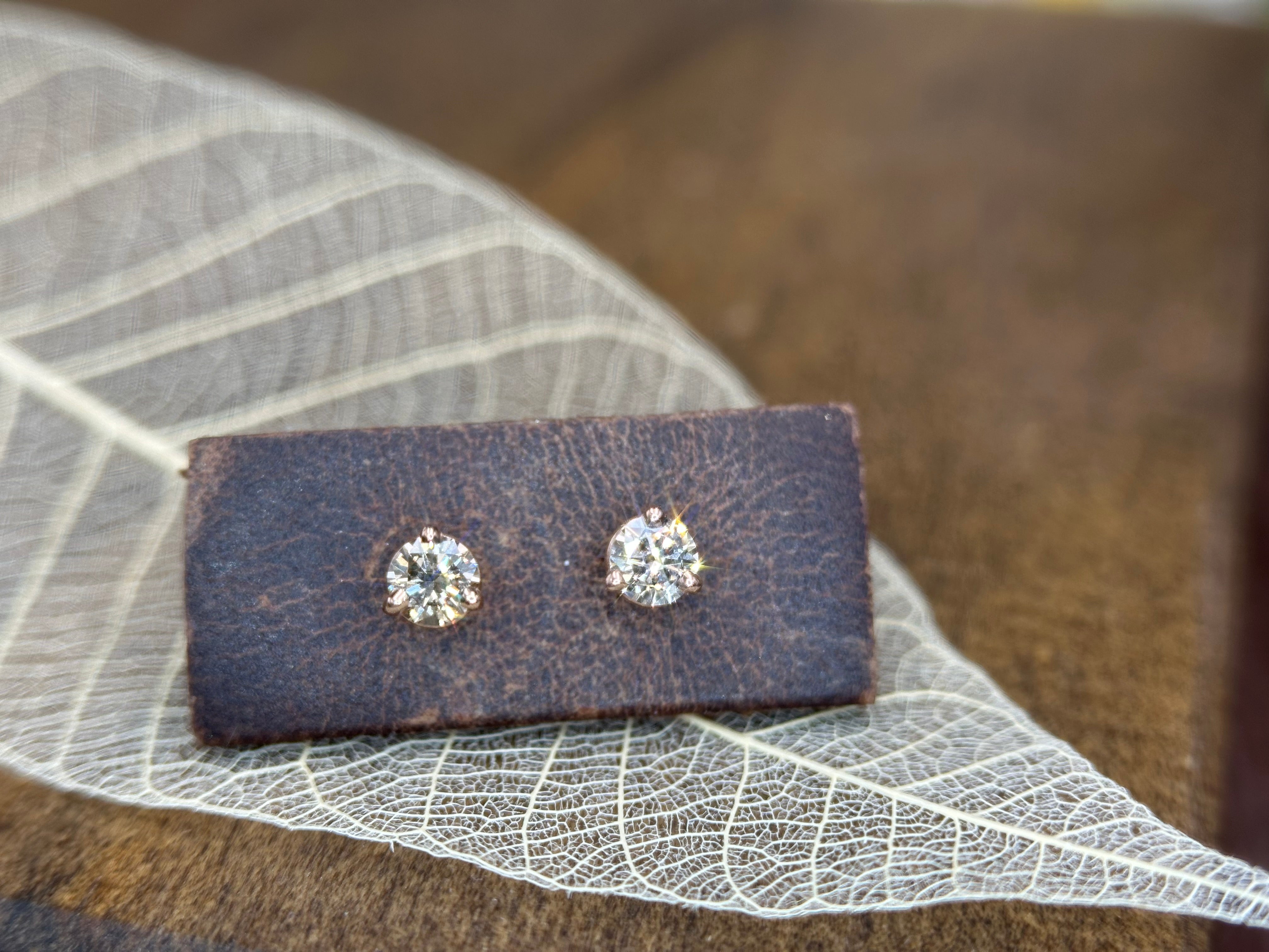 The ones you reach for every day. The Cinnamon Studs pair warm champagne diamonds with 14k rose gold for a combination that feels effortless and familiar. A classic three-prong setting keeps the focus on the stones — subtle enough for everyday wear, special enough to matter.