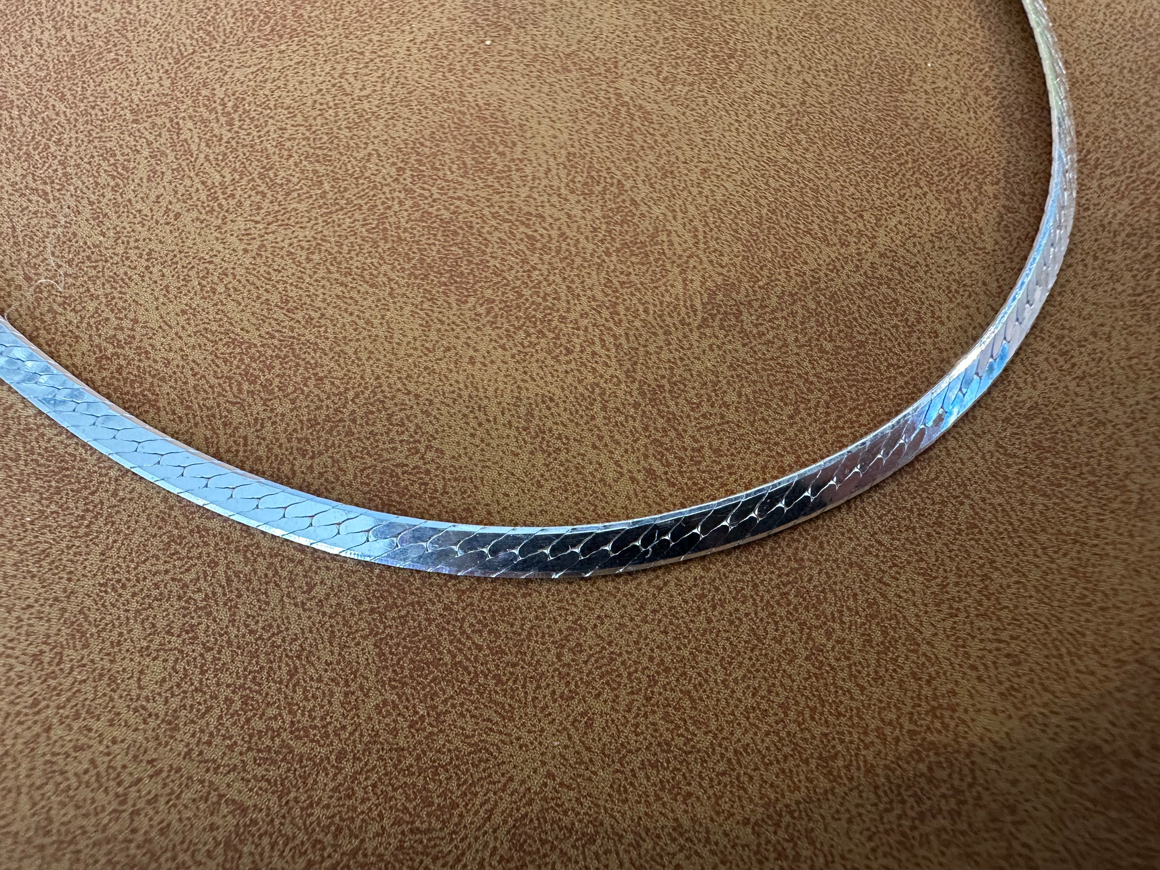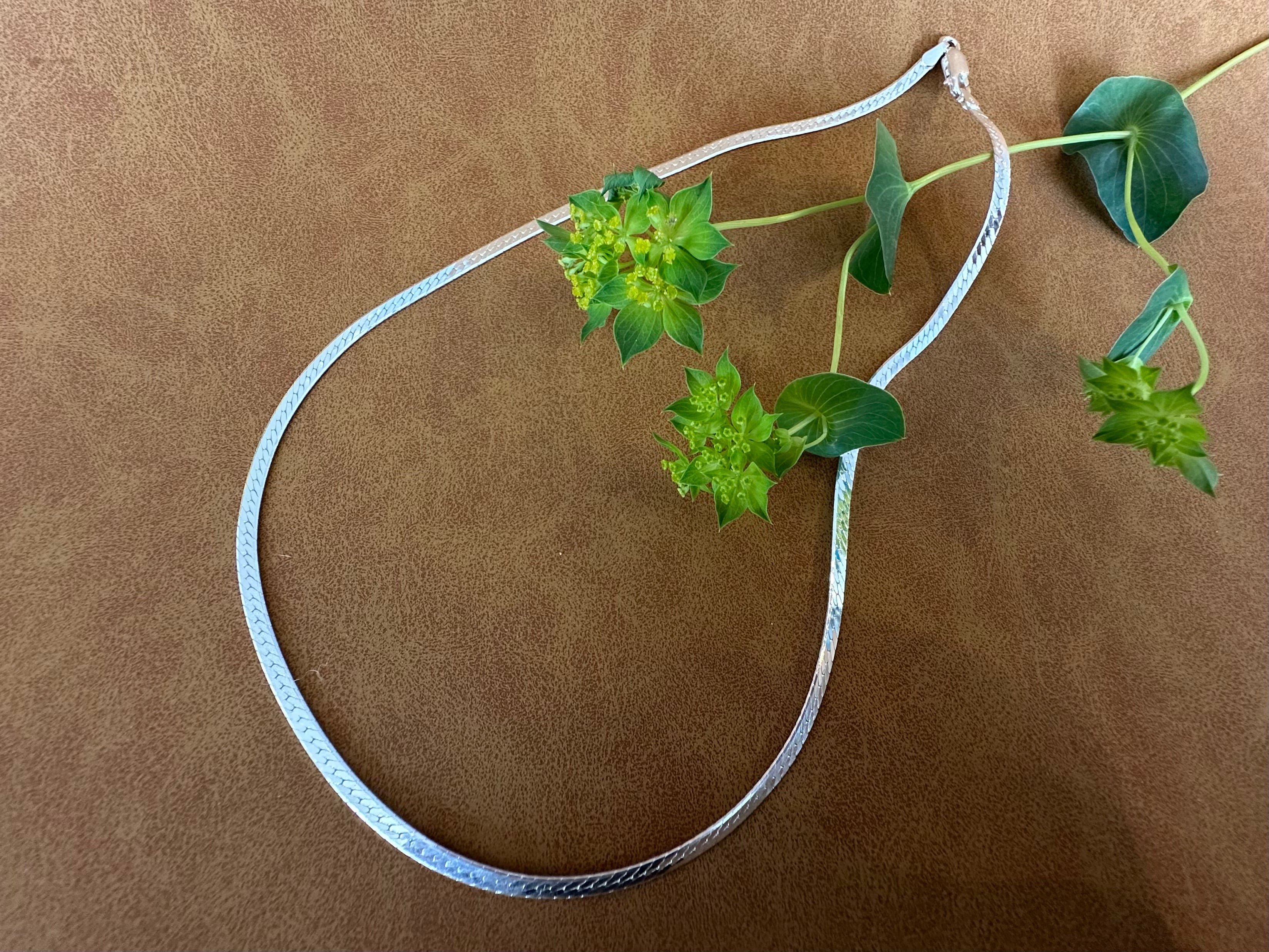 This sterling silver Herringbone chain sparkles beautifully, catching the light from different angles. This chain is just shy of 3mm in width, and is 16" in length with a sterling silver lobster clasp.