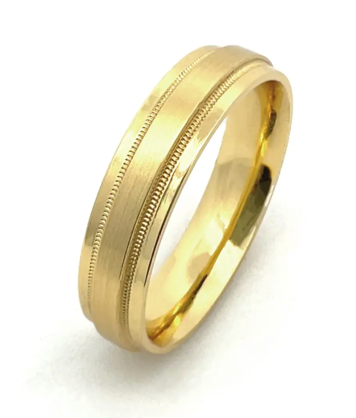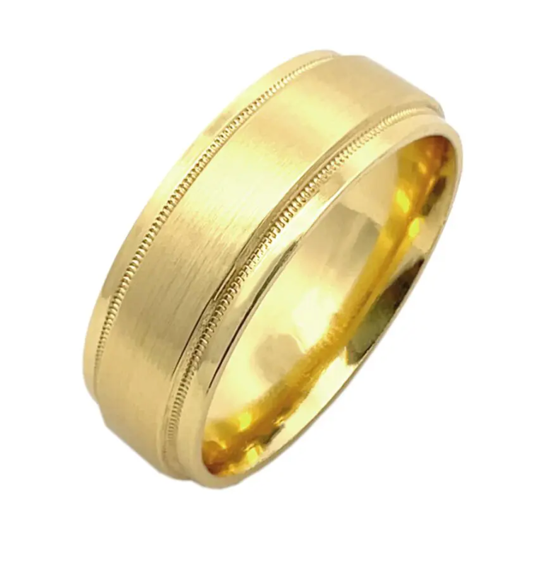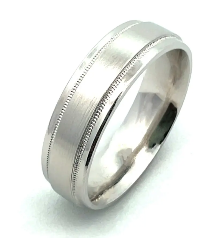 Two delicate lines of milgrain highlight the contrast between the matte center and the high polished rails. Available in numerous widths and materials so you can select your perfect custom combination. We will reach out requesting your ring size when we receive your order.