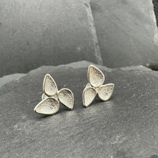 Deep Indigo and Latte Rose Cut Sapphire Silver Earrings