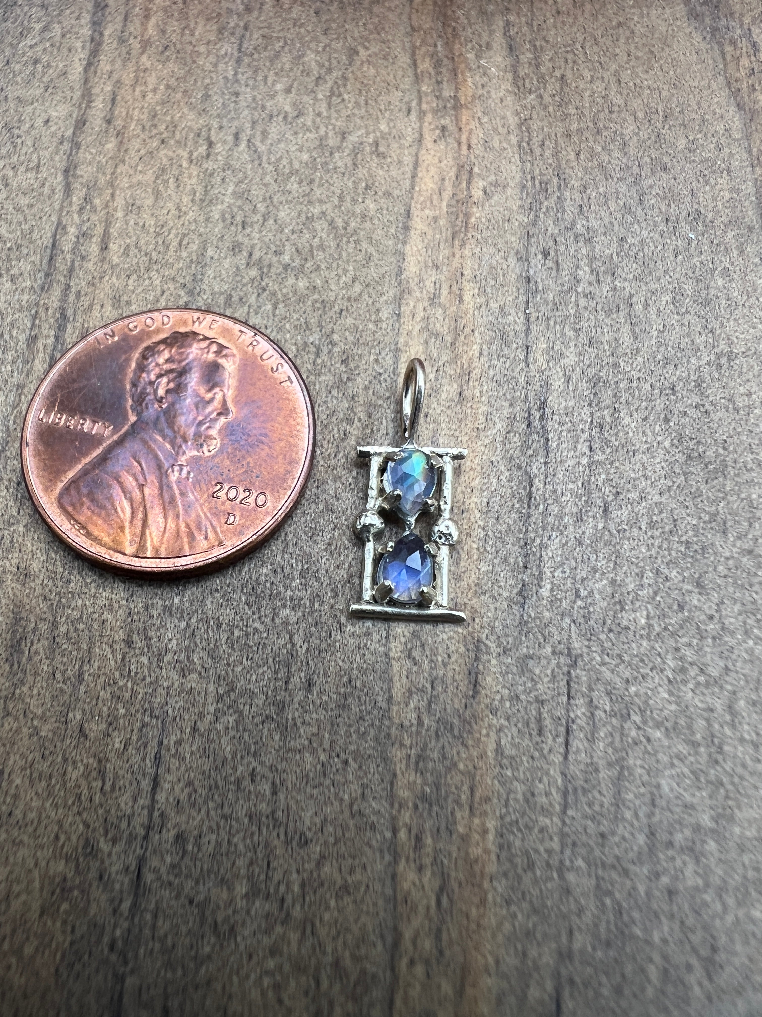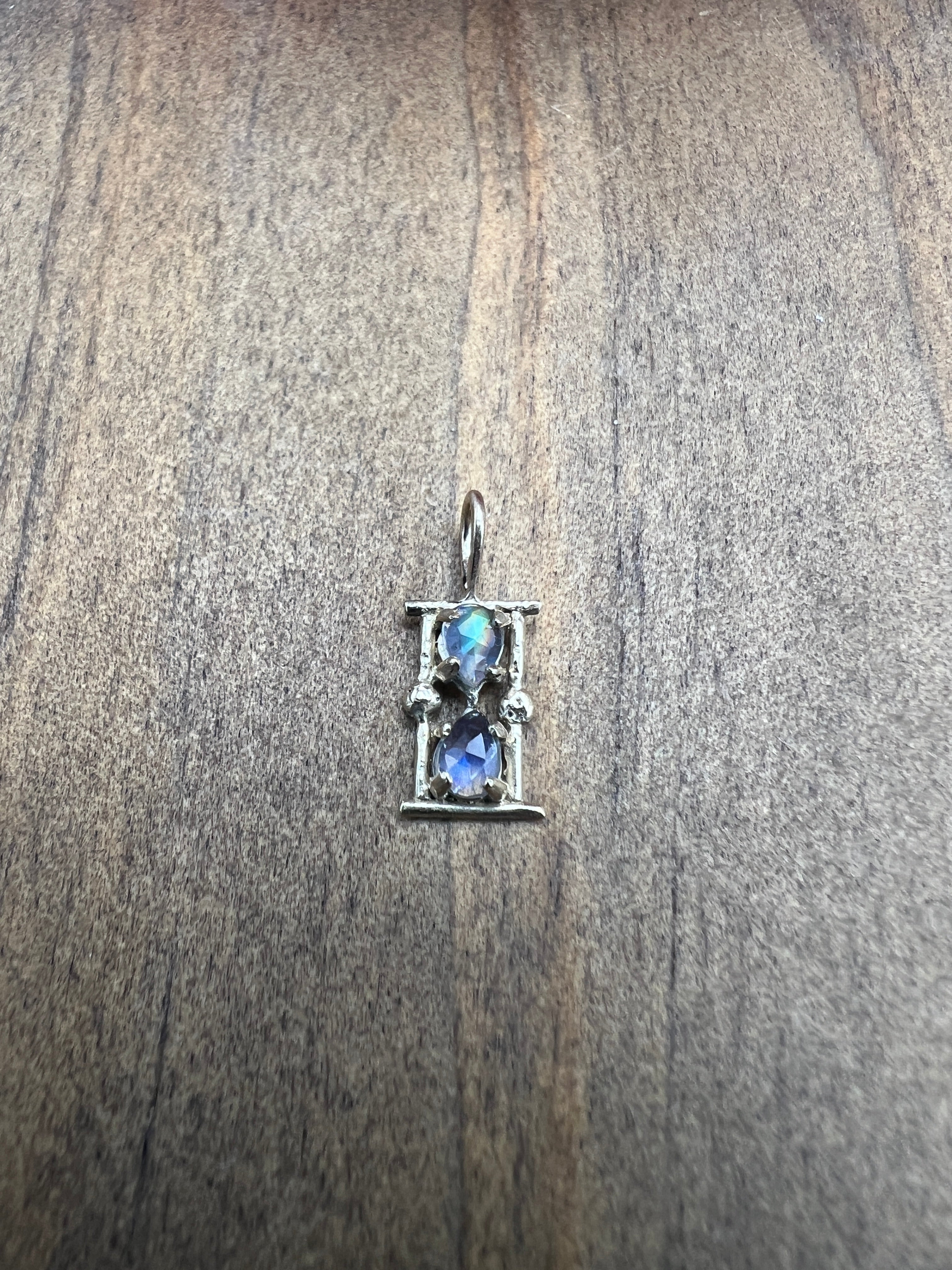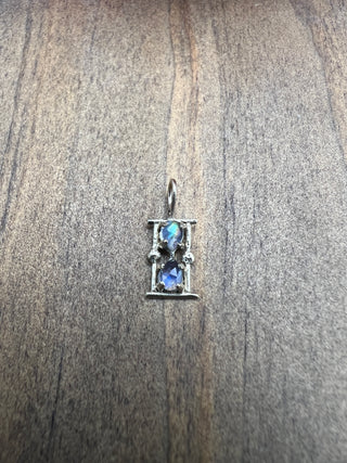 Symbolizing "time", the moonstone hourglass charm shines beautifully from your choice of chain or on its own as a charm. Made with 14k yellow gold, the charm is 10mm x 6mm.