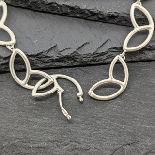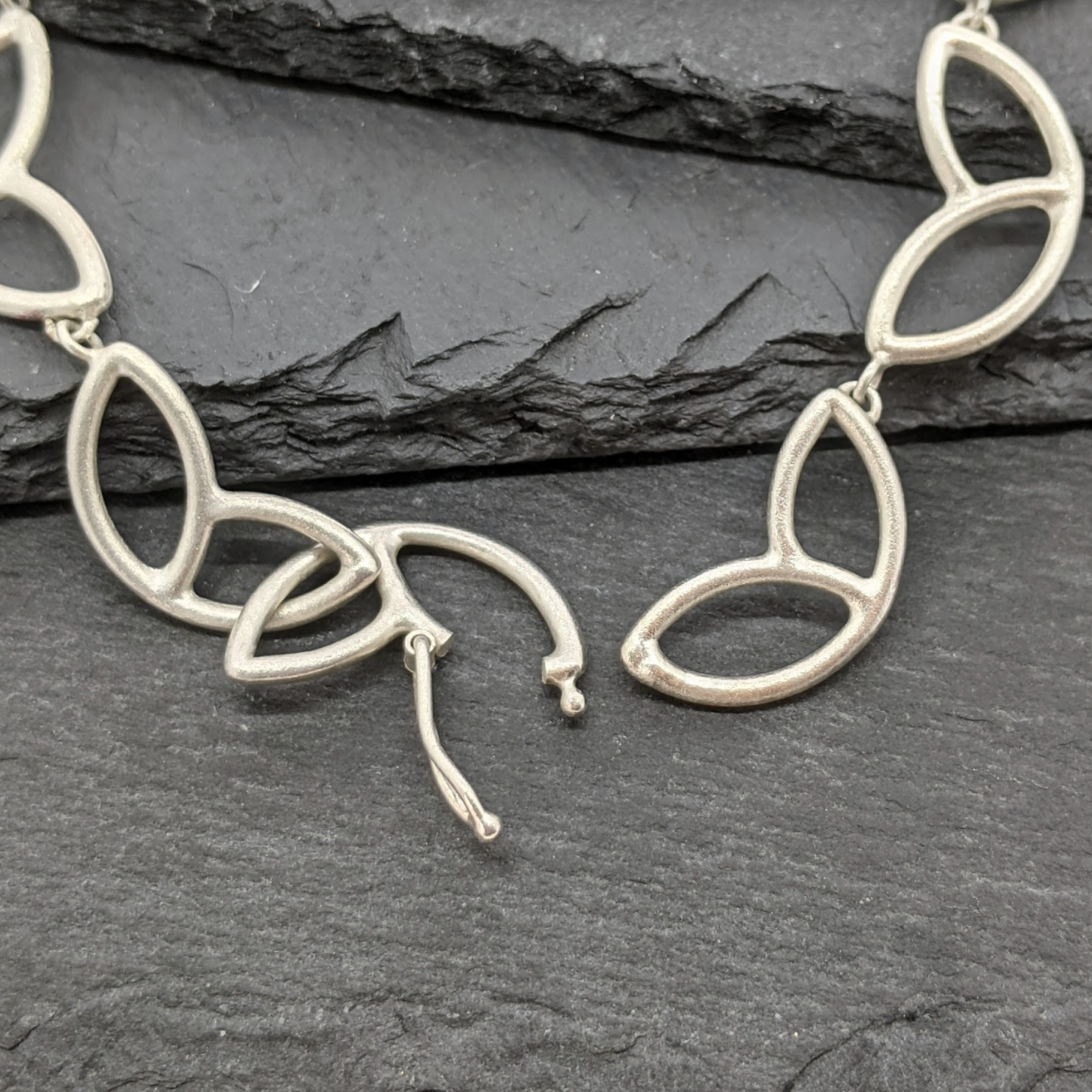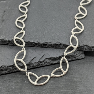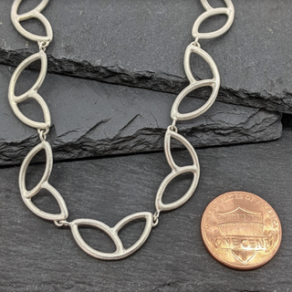 An elegant sterling silver chain made from 20 linked laurel stations. This necklace measures 16 inches in length.