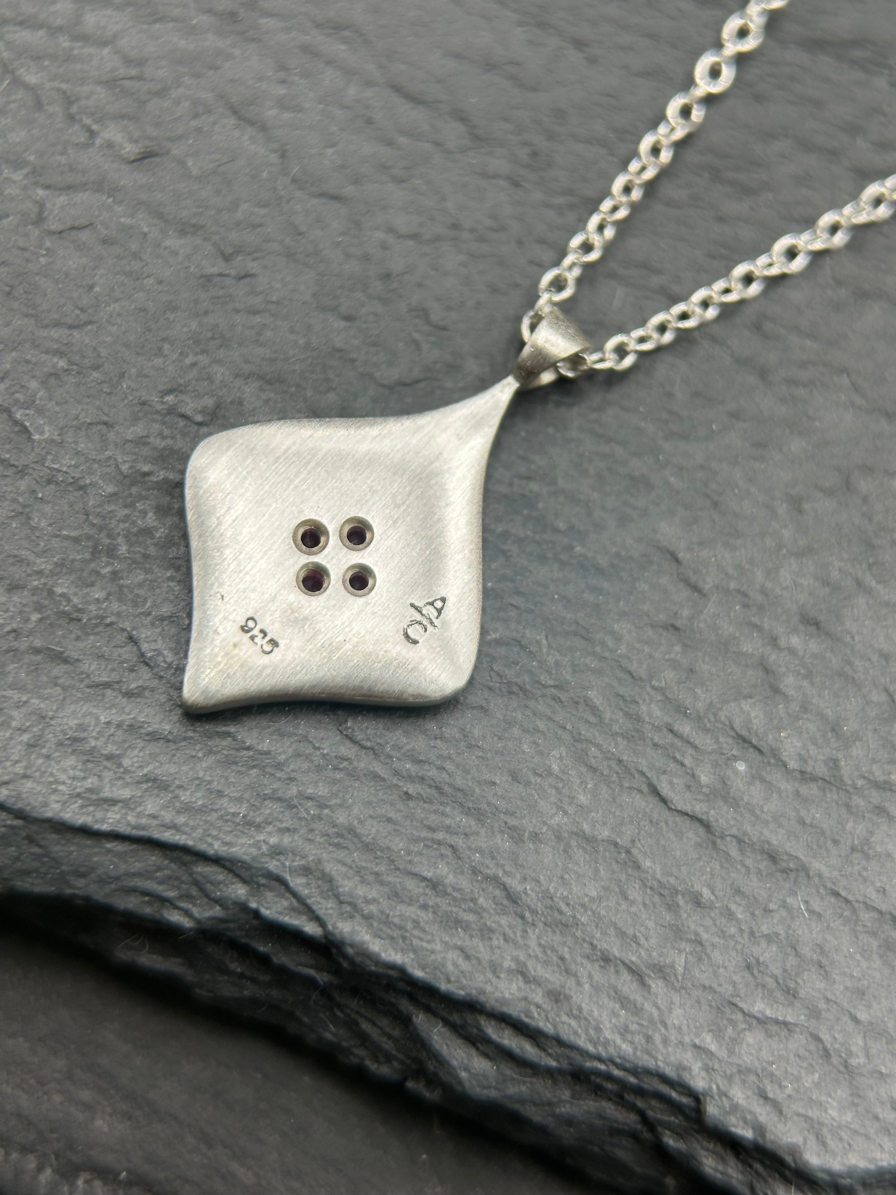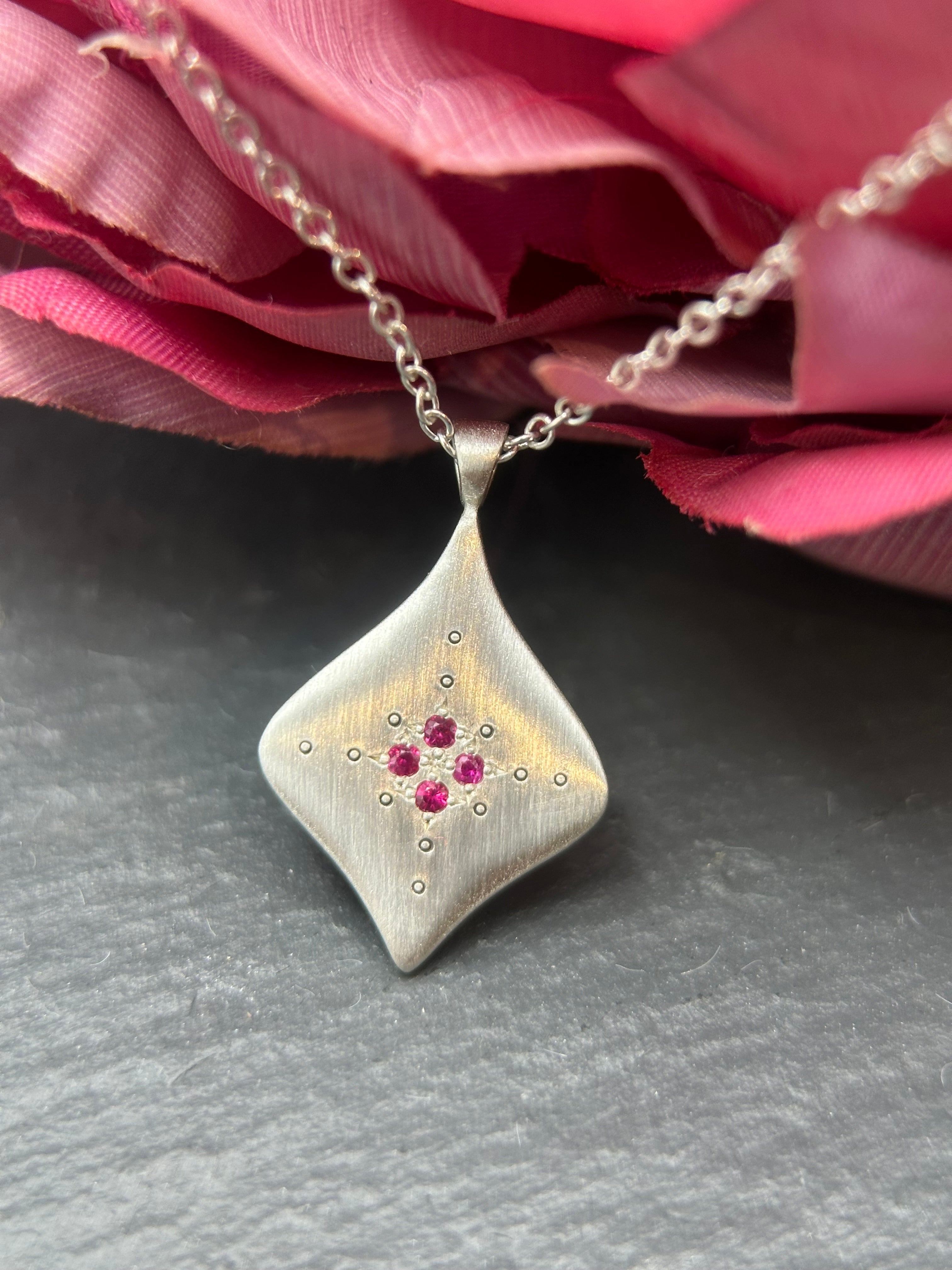 A beautifully shaped silver pendant set with a cluster of four rubies.