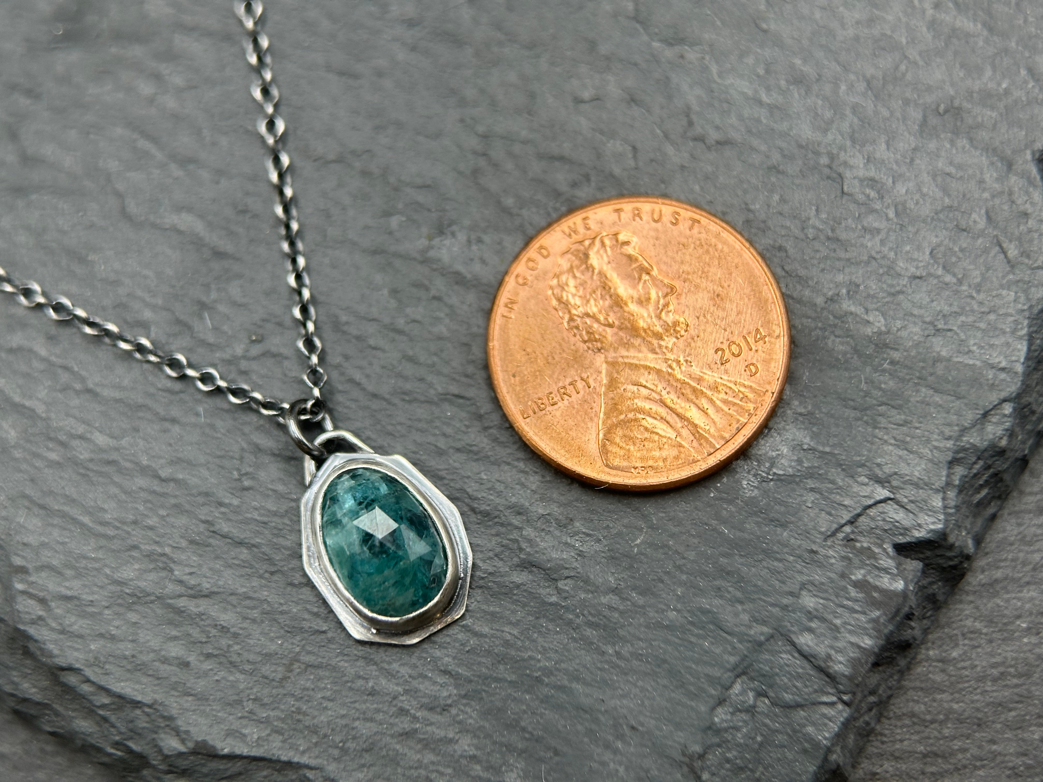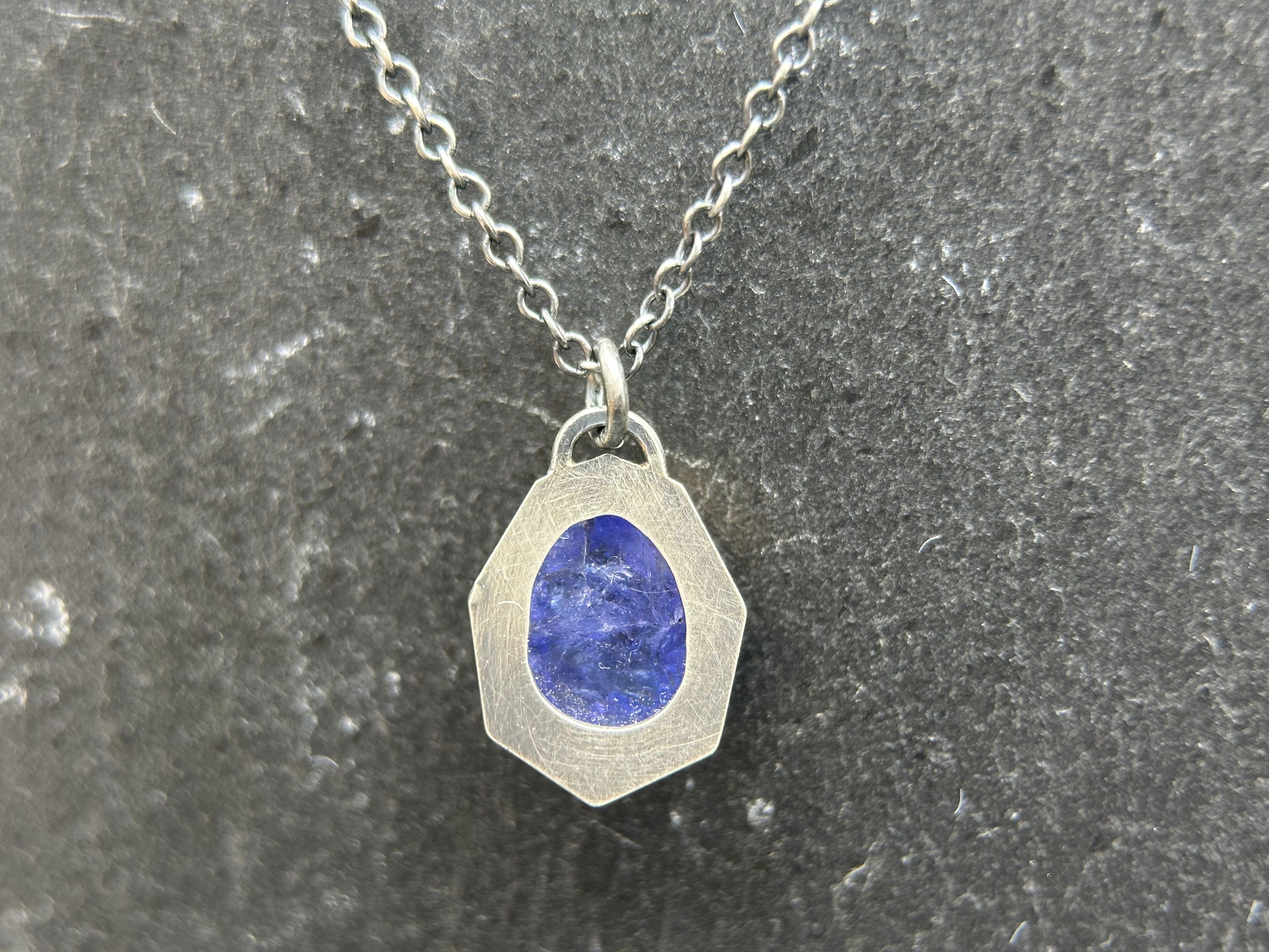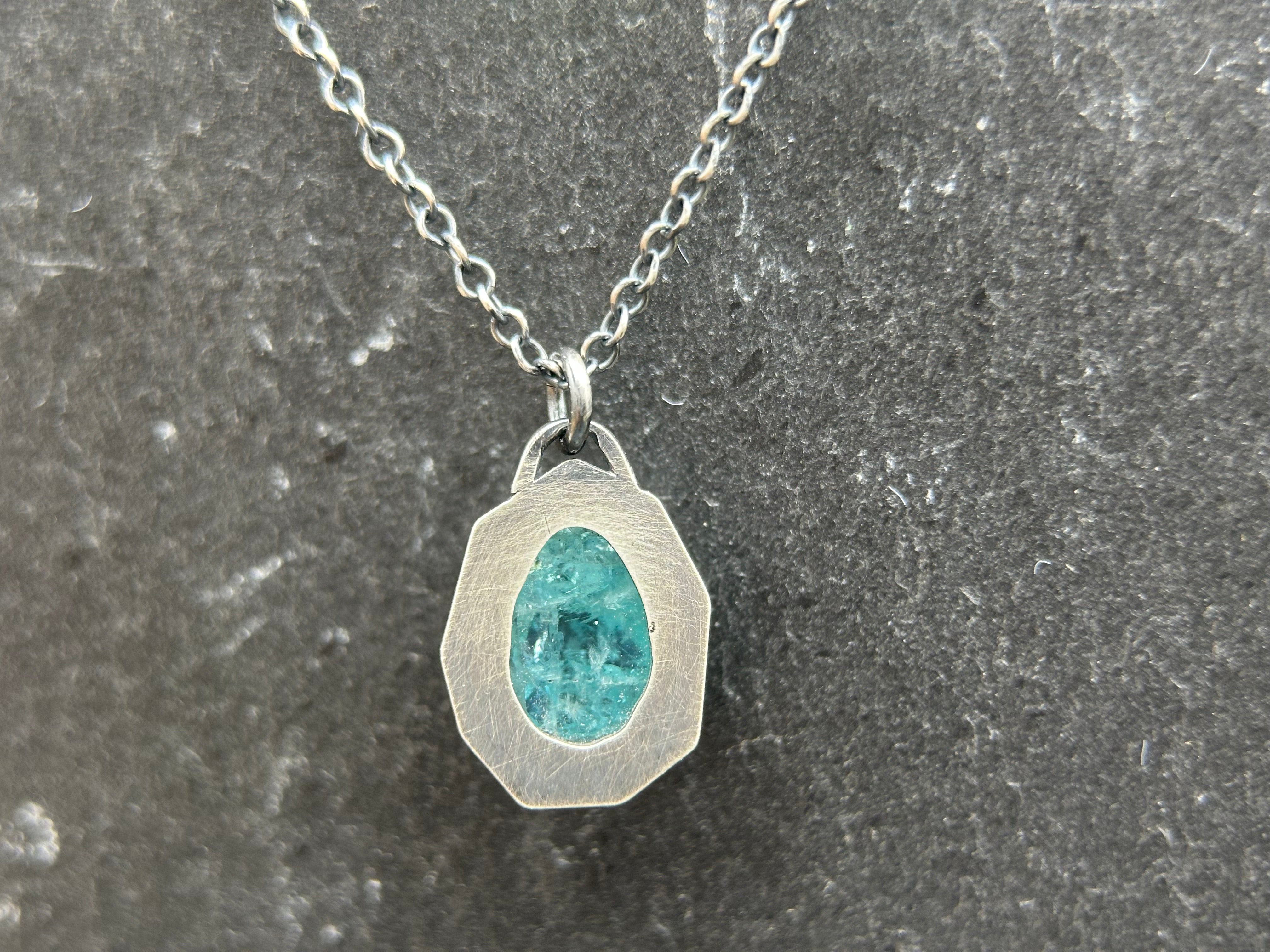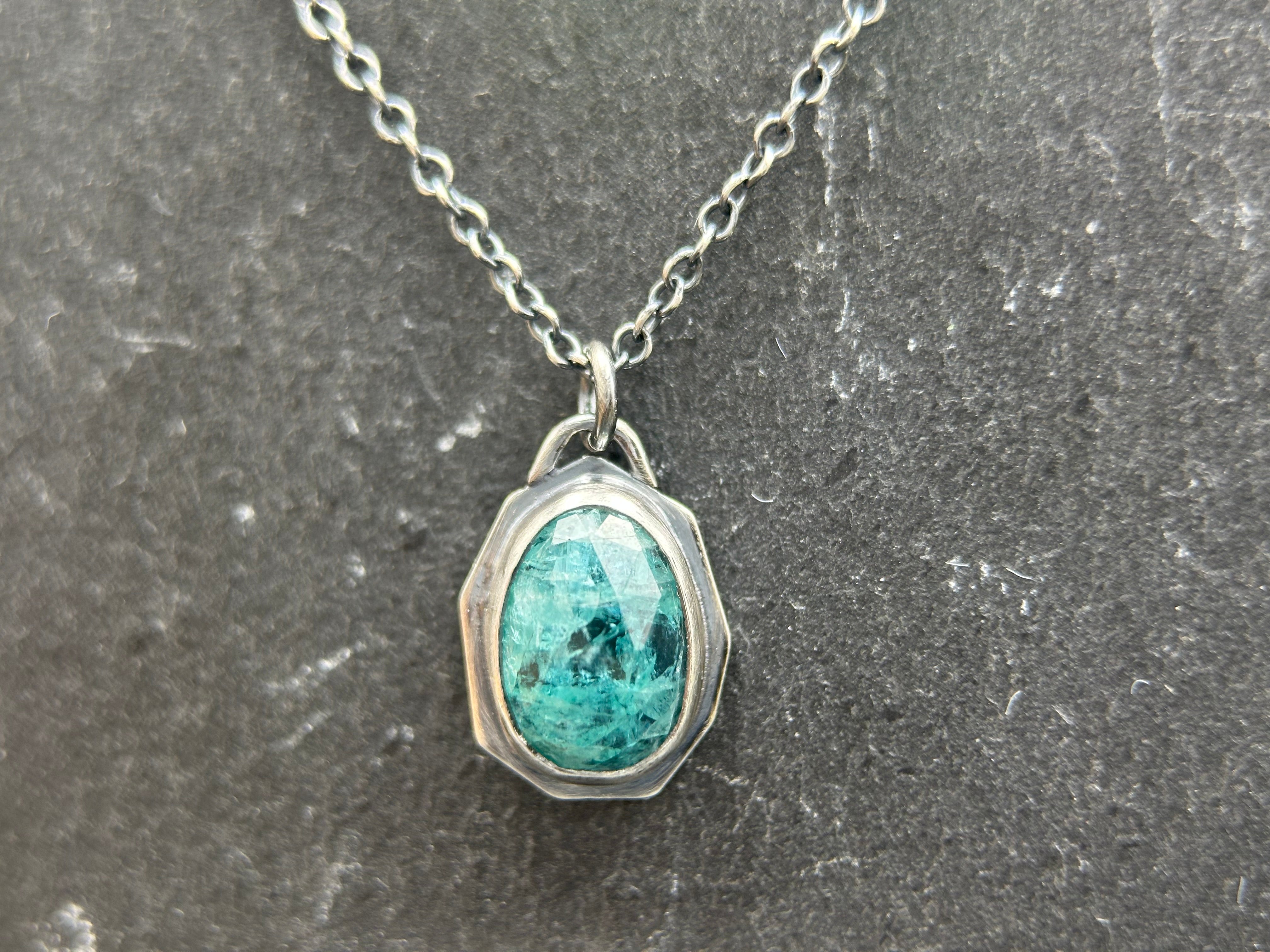 Rose-cut gems are elegantly bezel-set in sterling silver asymmetrical "windows" on these beautiful necklaces. The necklaces dangle like charms from oxidized 18" cable chains, which can be swapped out for different lengths or styles (please note that some alternative chains may incur a slight price increase).
